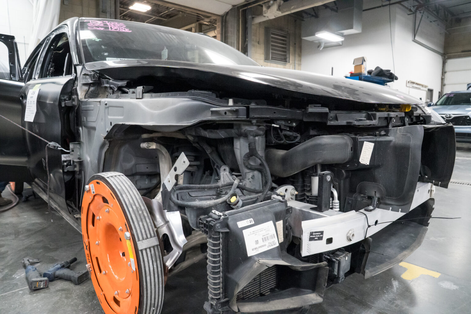 Technicians perform disassembly and damage mapping to identify all collision related damage.